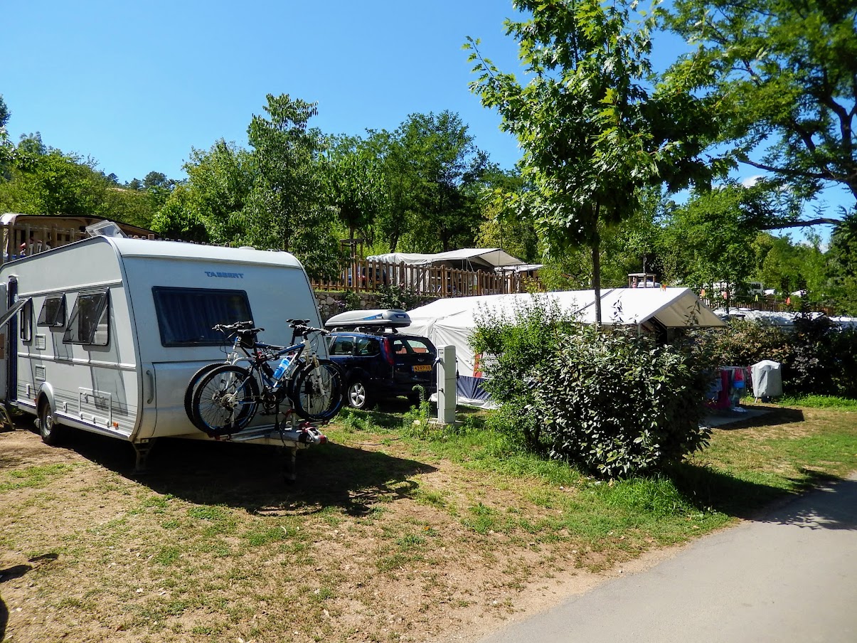 Als je deze plek te zonnig vindt, kan je de camping-eigenaar misschien vragen om een plaats met voldoende schaduw voor jullie tent.Wij hebben zelf een grote parasol en schaduwdoek bij ons voor het geval we ergens op een erg zonnige plek komen te staan..